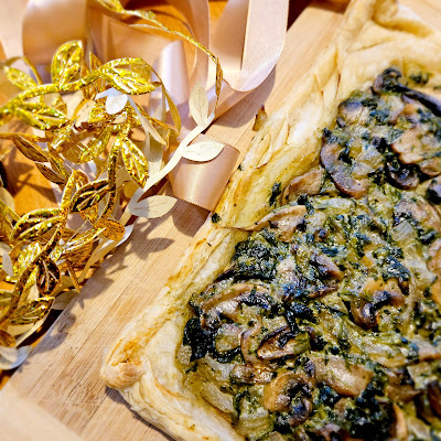 J’ai improvisé cette petite tarte salée avec un restant de pâte feuilletée et les ingrédients du bord. Le résultat fut si délicieux que la famille m’a demandé d’en refaire!